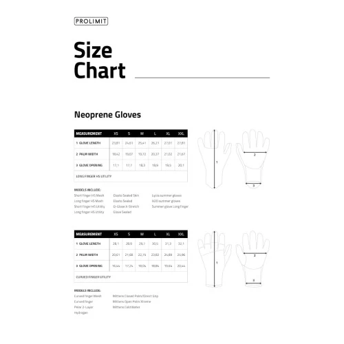 | 1 – Glove Length | 28.1 | 28.9 | 29.7 | 30.5 | 31.3 |