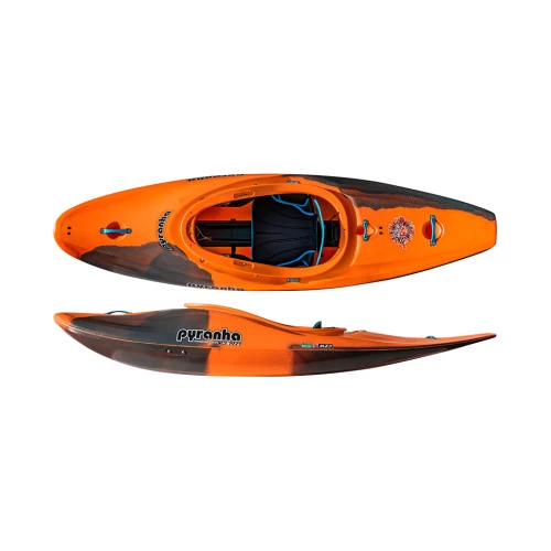 The Pyranha Scorch is the boundary-smashing culmination of decades of evolution, combining and refining features from industry-leading designs like the Burn (uncompromisingly sharp rails), 9R (volume distribution and bow rocker), and Ripper (fast and nimble planing hull); the hybrid rocker profile adds to this with the progressive bow rocker being efficient on the move, planing over even the burliest of features, whilst the stern kick-rocker gets the back edge of the boat out of your way on the lip of drops and ensures you skip out over whatever lies in wait below; a fine balance of length and edge carries speed and maintains precise lines, even in boily, unpredictable water; and the generous but carefully tailored volume keeps you on top of the water and gives you the capacity to carry all your essentials without blocking your paddle strokes.